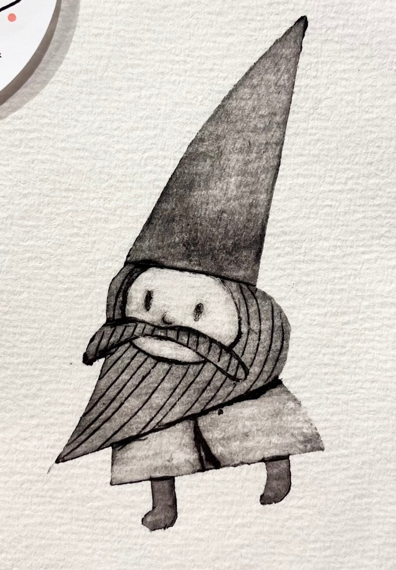 Motivet er skåret ut av materialet tetrapak, som man bla. a. finner i juskartong. Teknikken gjør at det oppstår mange tilfeldigheter i motivet fra skjøter og merker i kartongen. Figuren trykket gir også et relieff i papiret.