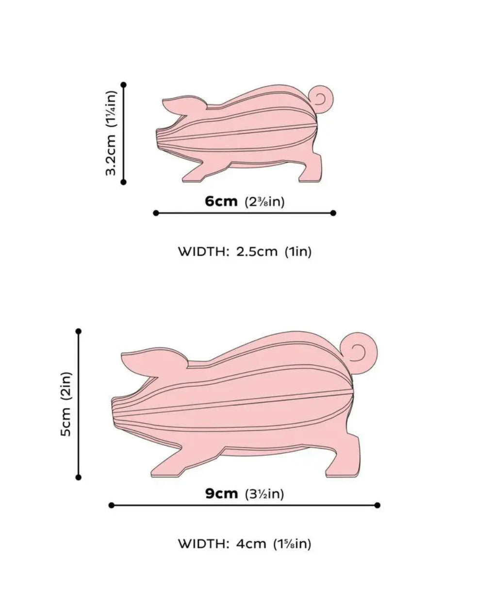 6 cm bred, 3,2 cm høy, reinsdyr til å bygge selv. Kommer flatpakket, delene presses ut av tynne bjørnefinérplater.