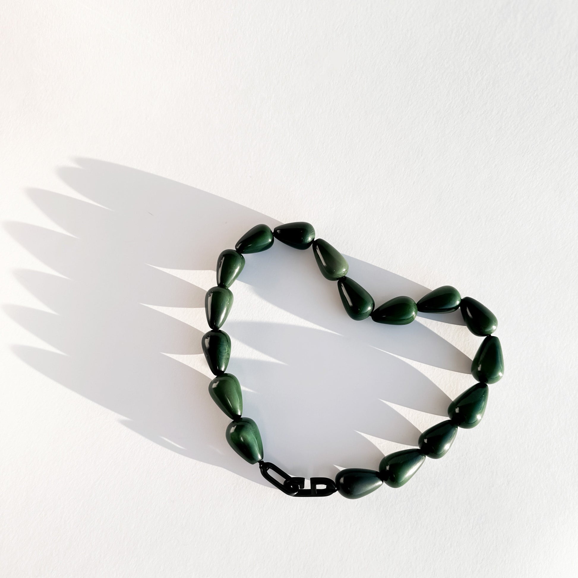 Hver perle fra Dione-kjedet er håndlaget individuelt og farget med naturlige fargestoffer. Den elegante låsen er laserskåret og holder kjedet trygt på plass.