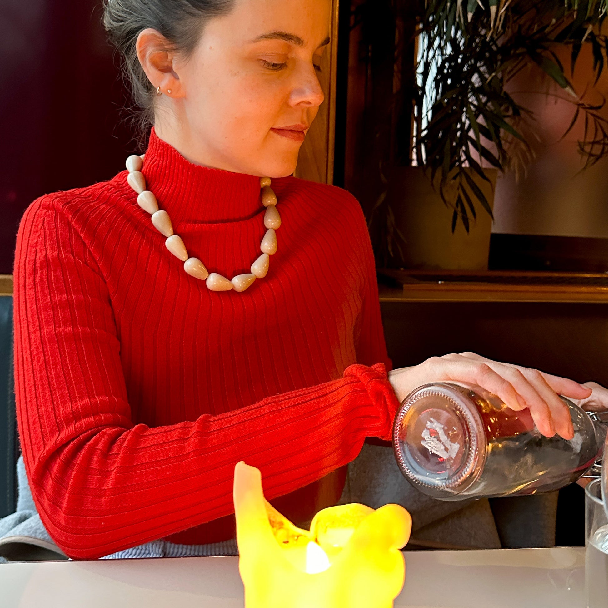 Halskjedet laget av taguanøtt, også kalt naturens elfenben.