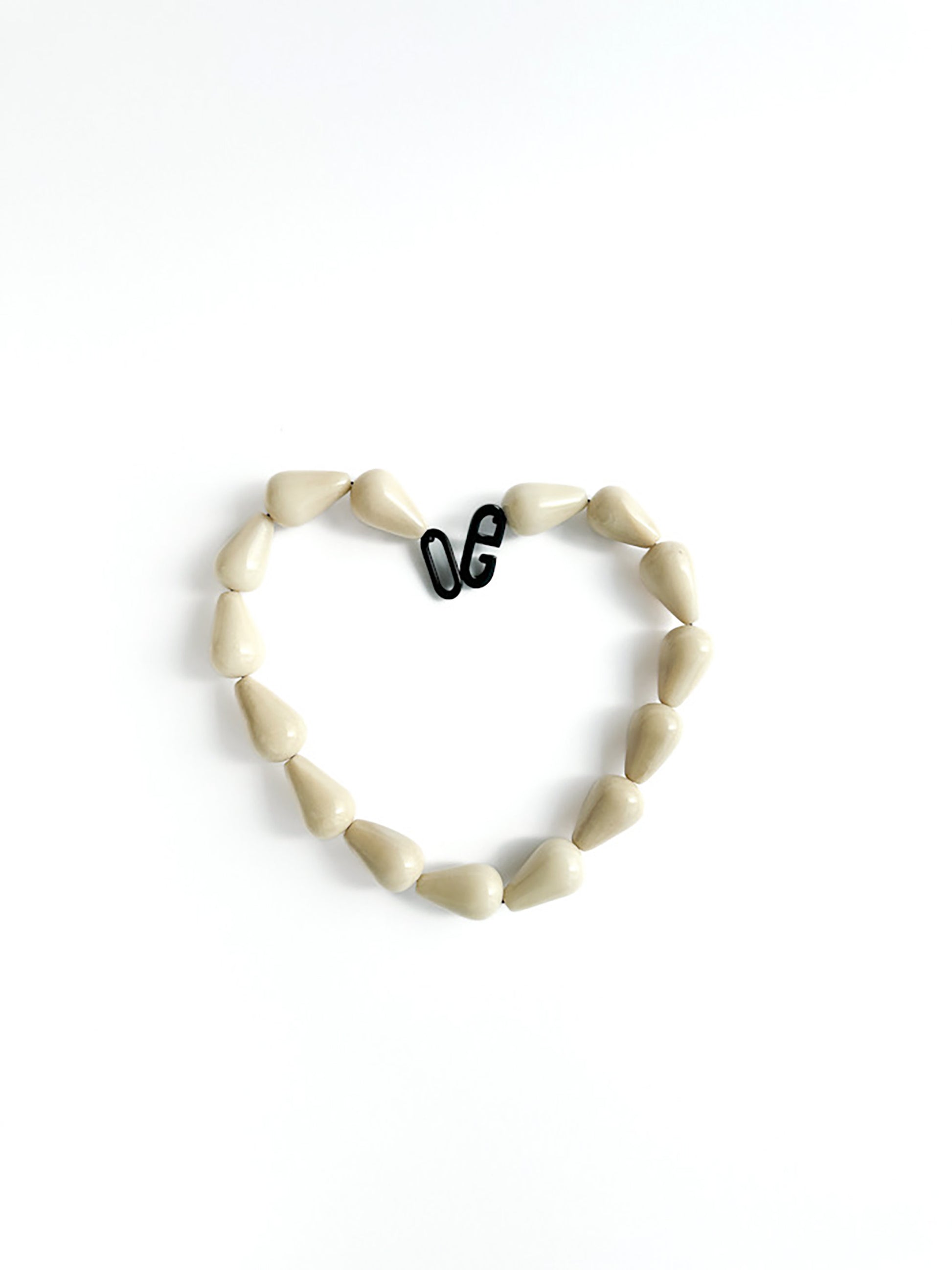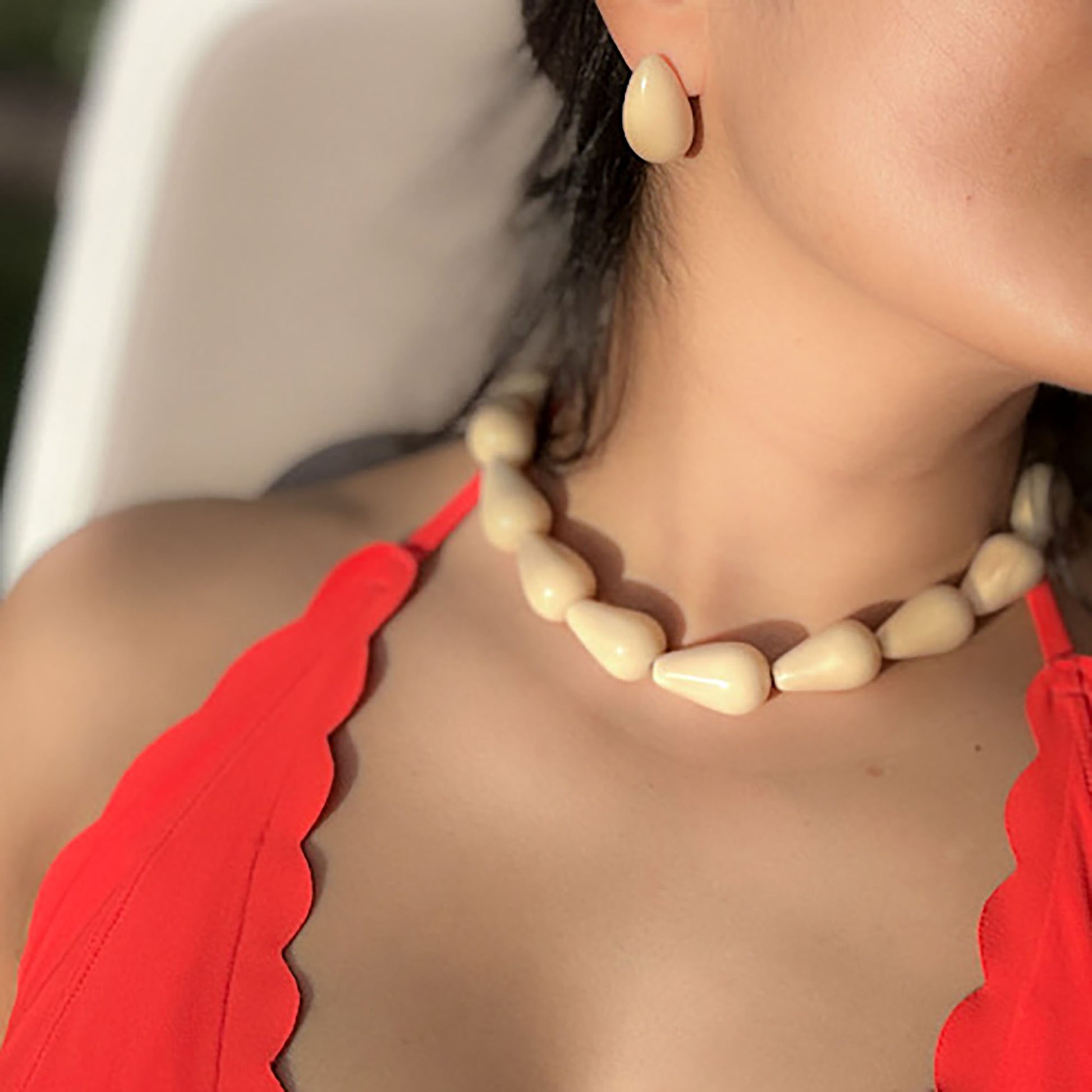 Halskjedet laget av taguanøtt, også kalt naturens elfenben.