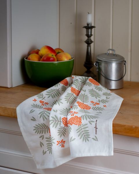Sett farge på kjøkkenet med nydelige kjøkkenhåndklær i lin og bomull. Håndklærne er i god kvalitet og er trykket med miljøvennlige farger som holder godt i vask. • Str: 50 x 70 cm • 50% lin og 50% bomull • Kan vaskes på 60 grader • Trykket med vannløslige og miljøvennlige farger • Produsert i Sverige • Norsk Design av Ruby Semb