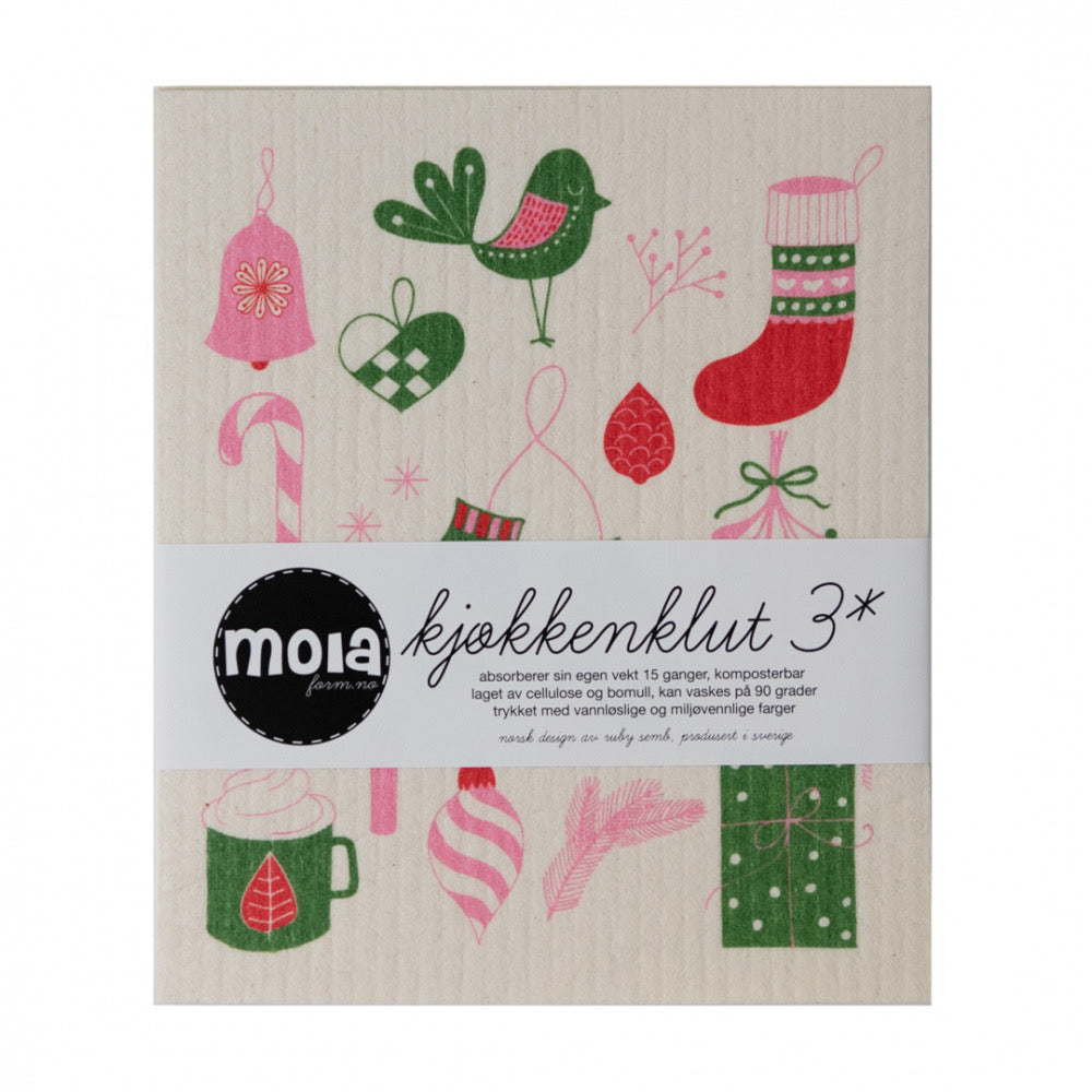 3 pk kjøkkenkluter, Jul rosa
