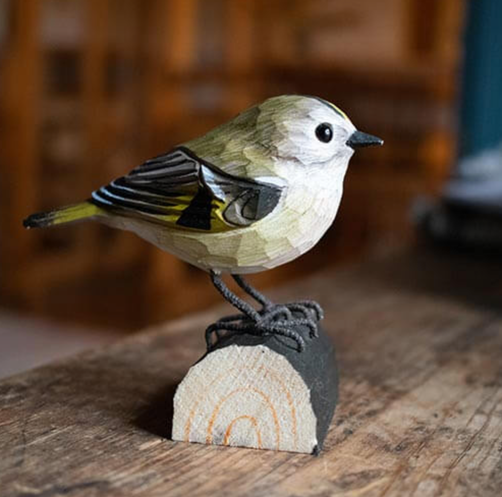 Fuglekonge, håndskåret av lindetre, håndmalt i miljøvennlige farger.
