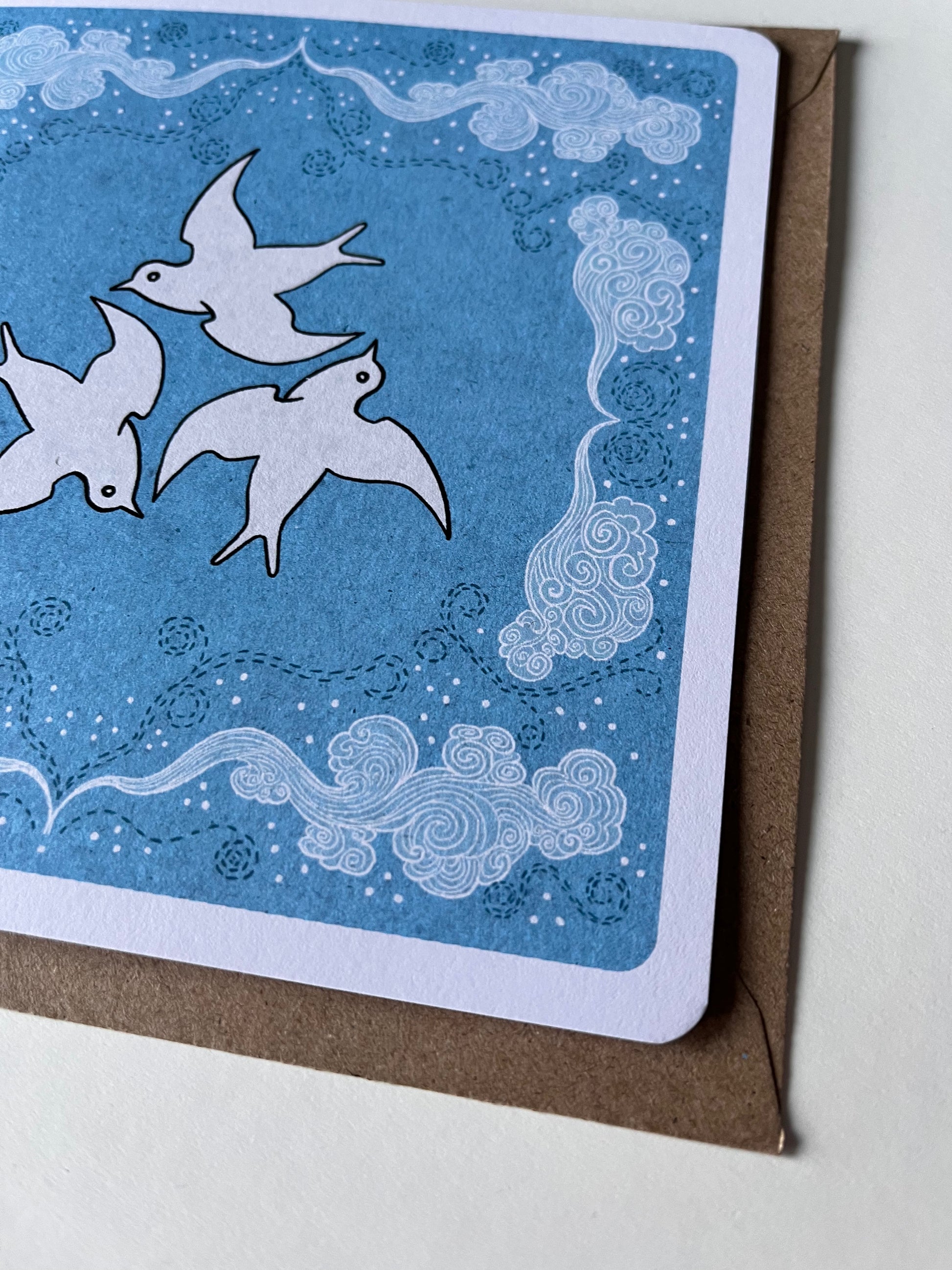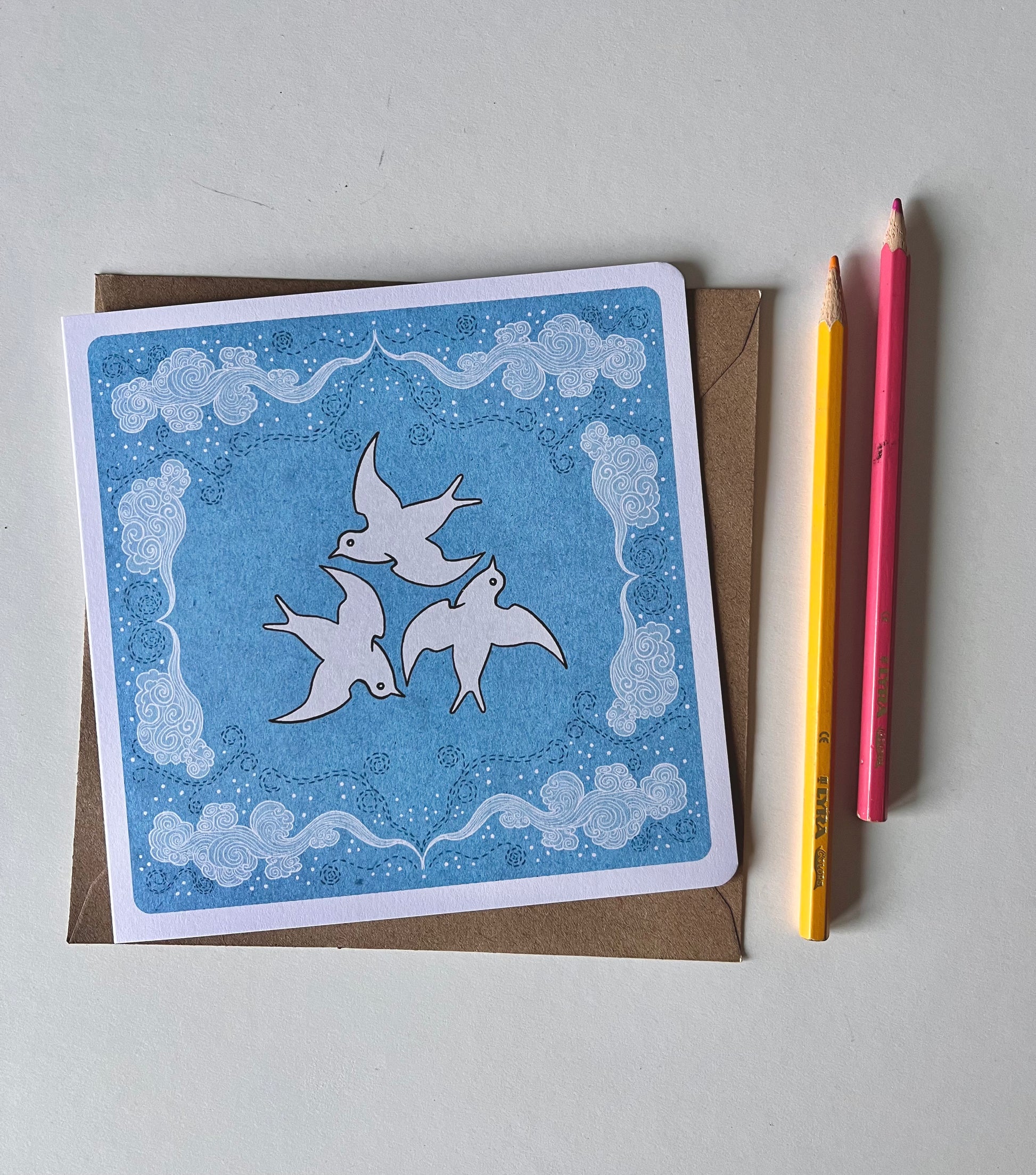 Format: 148 x 148 mm, avrundede hjørner, blank innside.