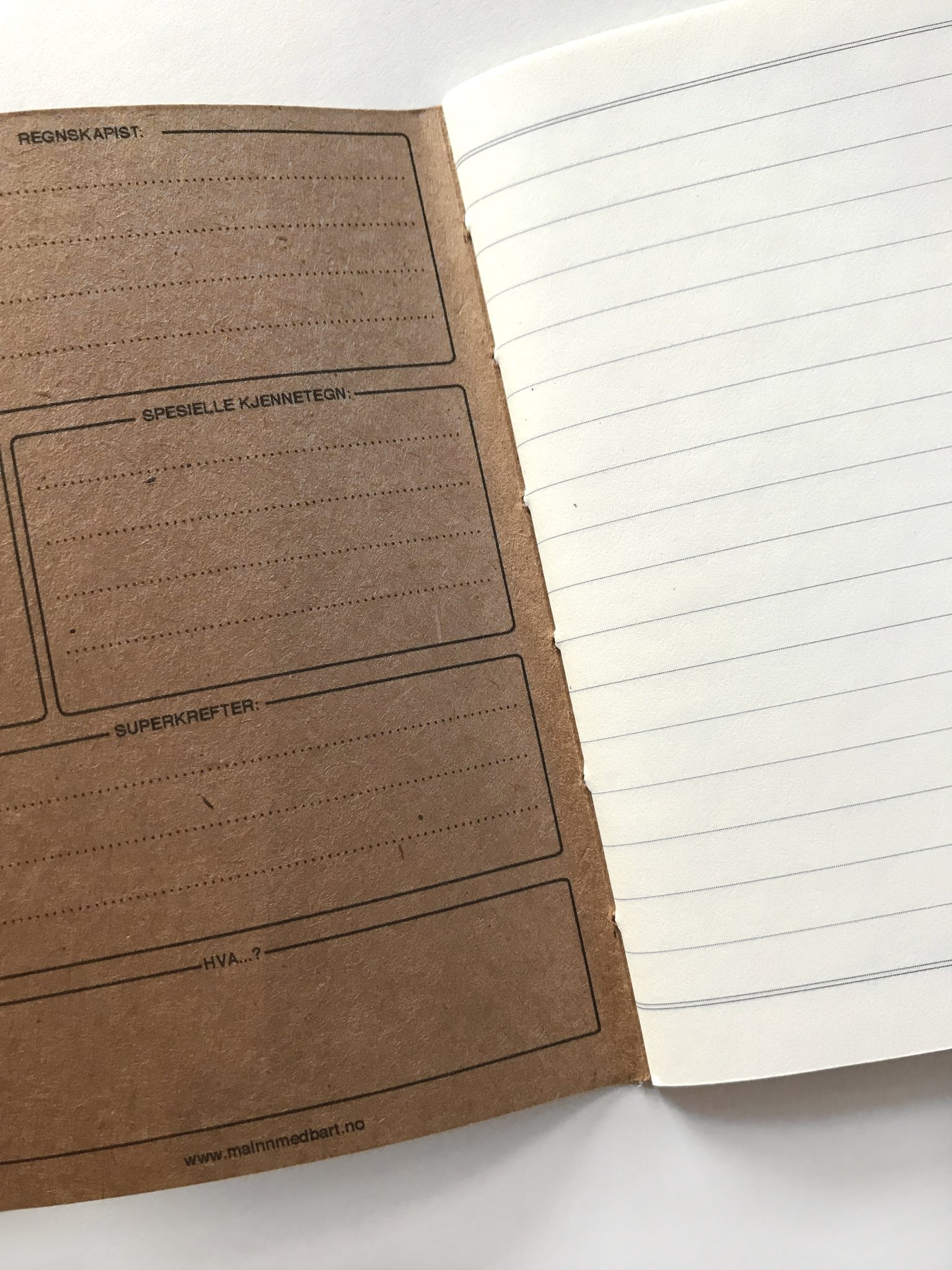 Lommenotatbok i A6-format, håndinnbundet i Oslo av Mainn med bart
