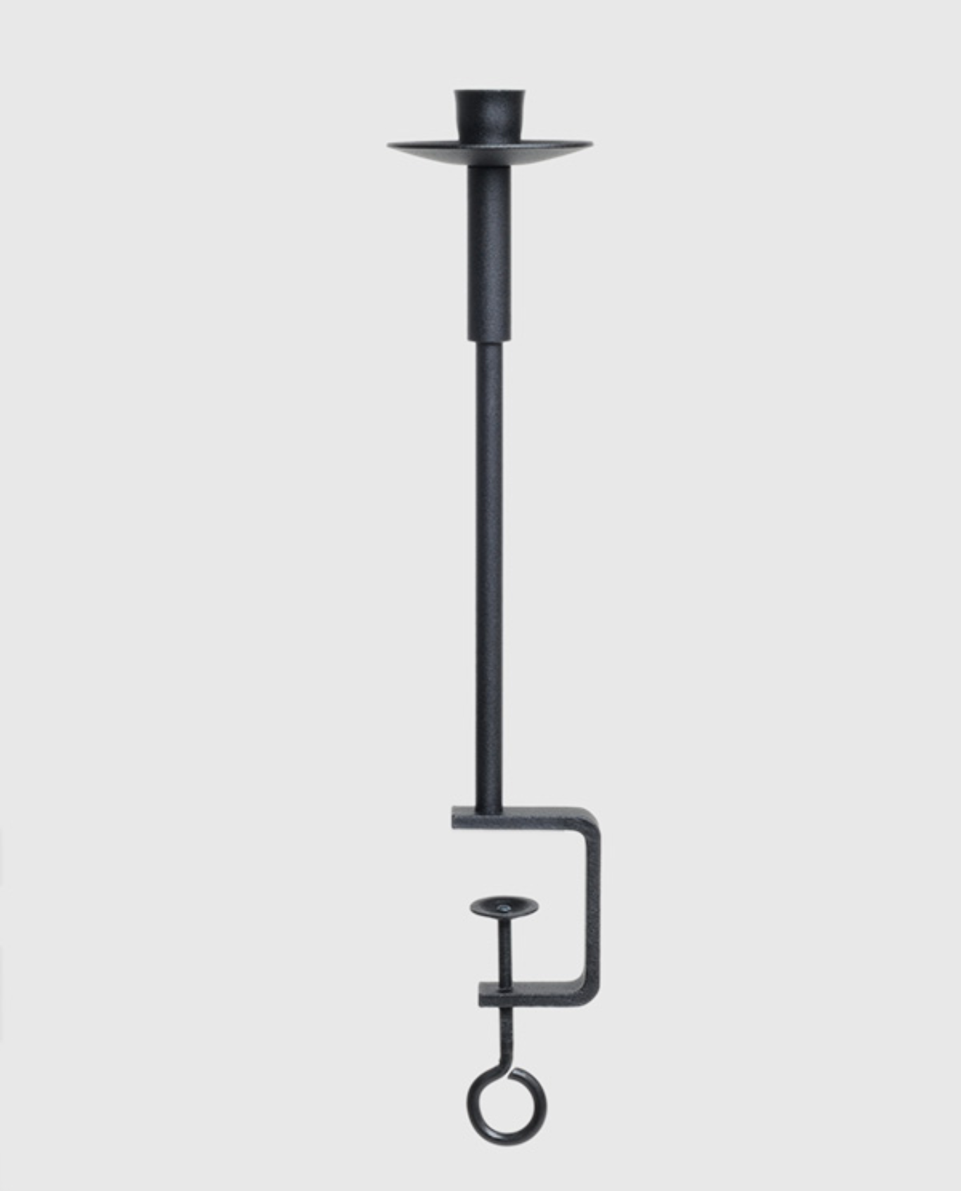 Lysholder i smijern som kan festes i bordplate, hylleplate eller vinduskarm.