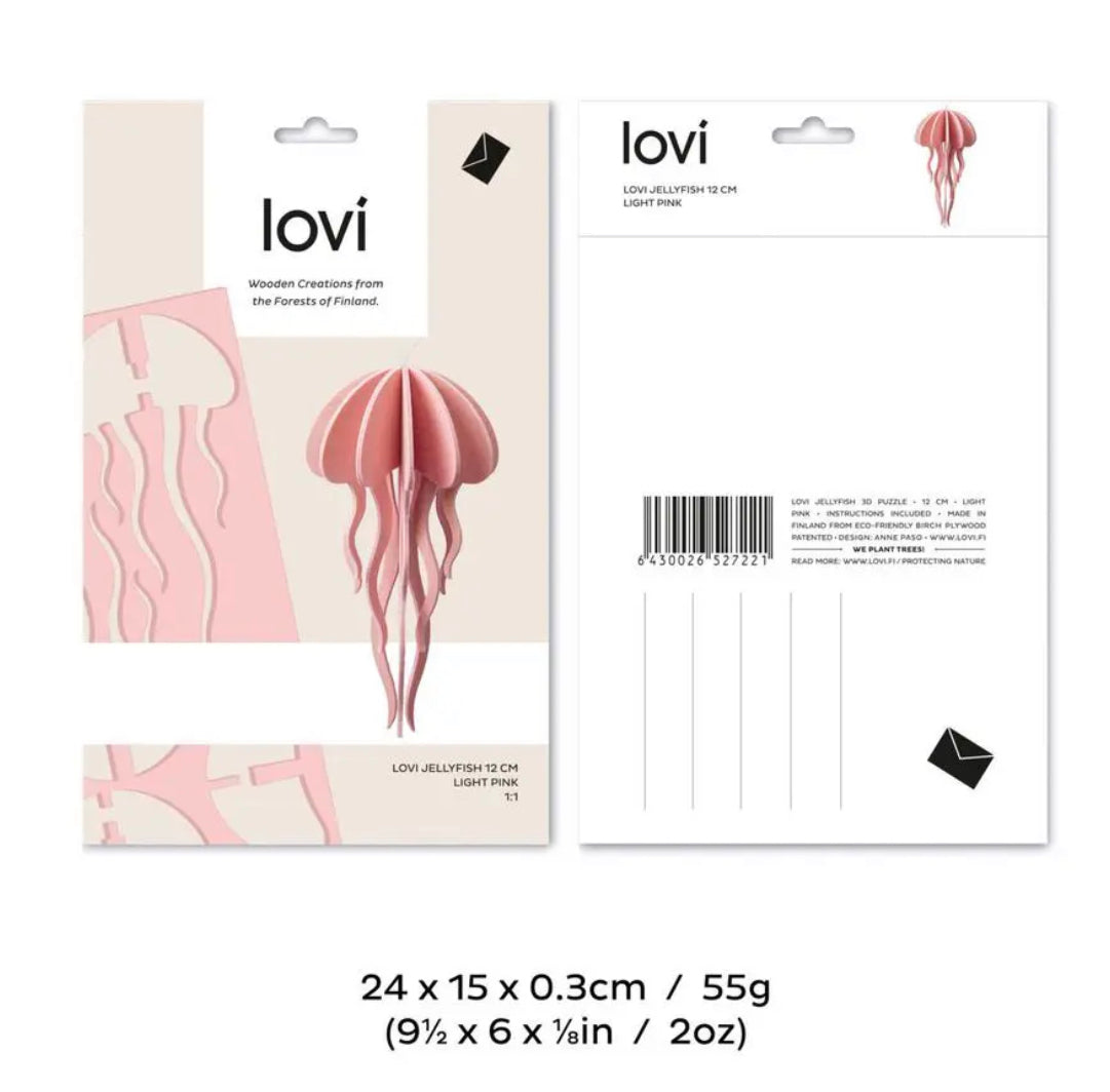 Produsert i Finland. Plastikkfri. Lett å sende postkort-størrelse. Illustrerte byggeinstruksjoner på innsiden. Patentert av Lovi Finland.