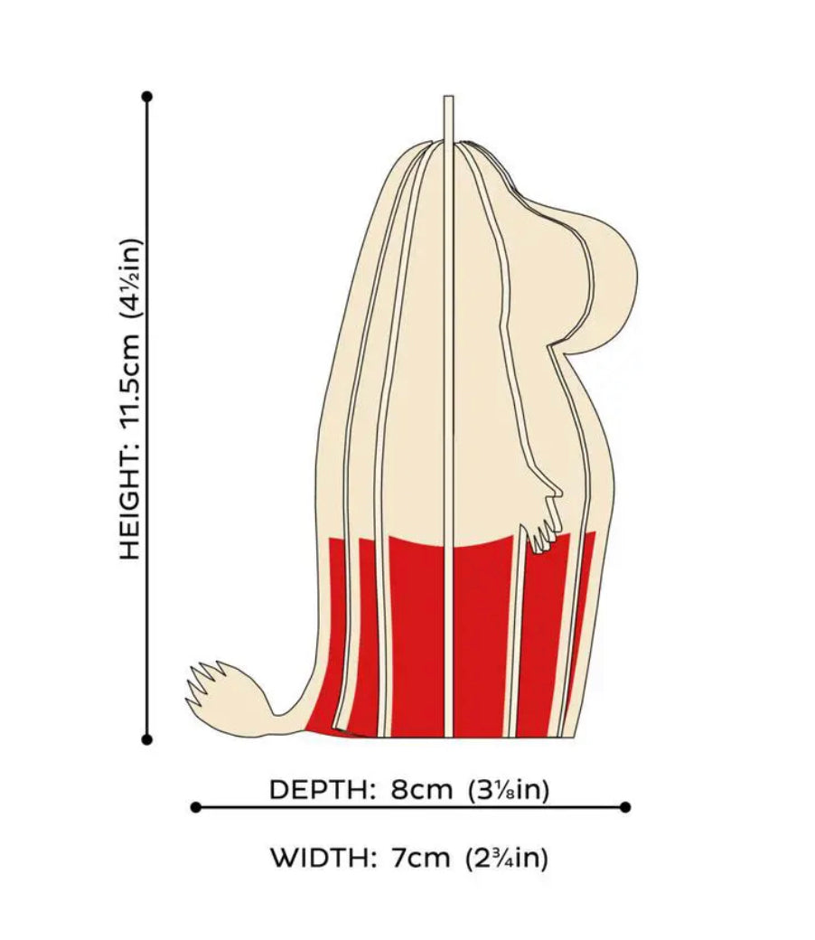 Figur fra Mummidalen til å bygge selv. Kommer flatpakket, delene presses ut av tynne bjørnefinérplater.