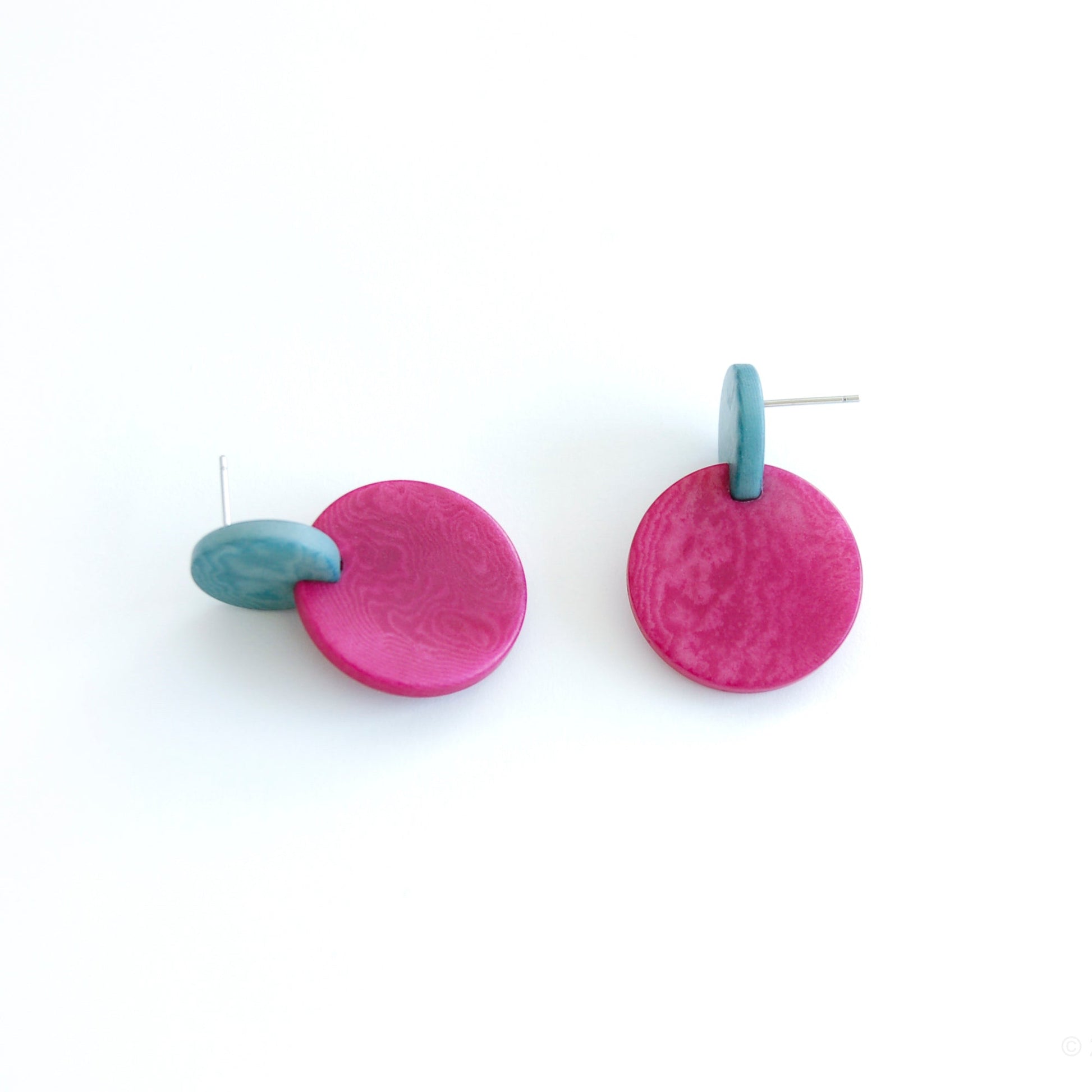 Øredobber i taguanøtt, ALVA Sky og Neon Fuchsia