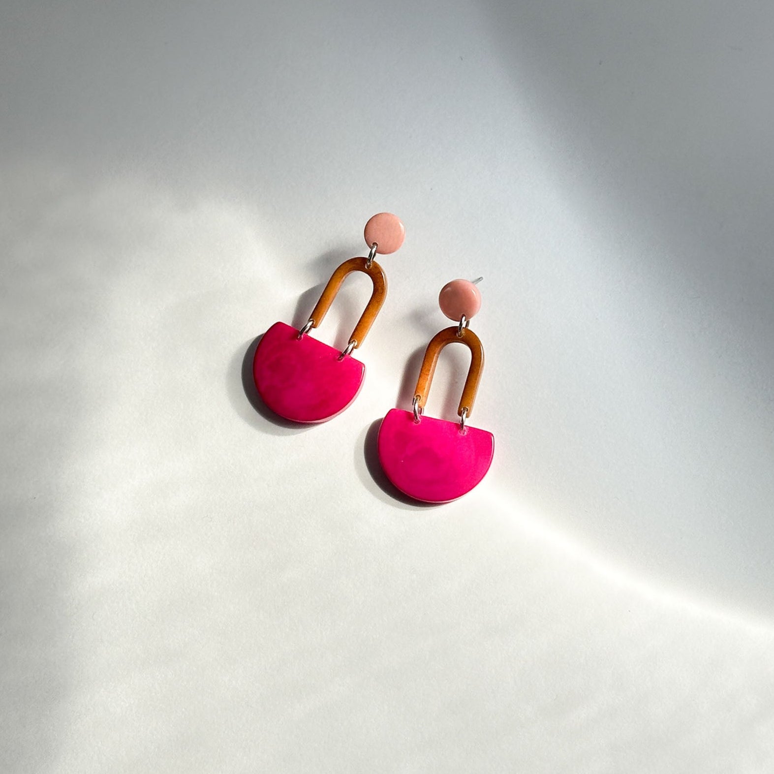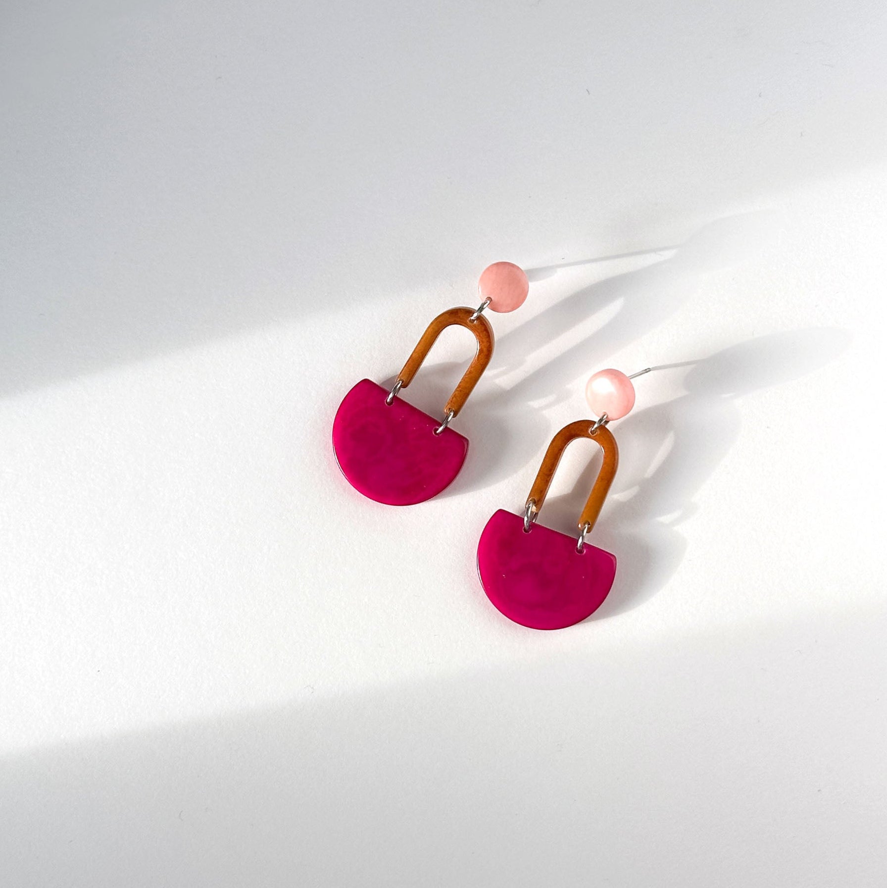 Øredobber i taguanøtt, GALATEA Rose, Honey and Fuchsia