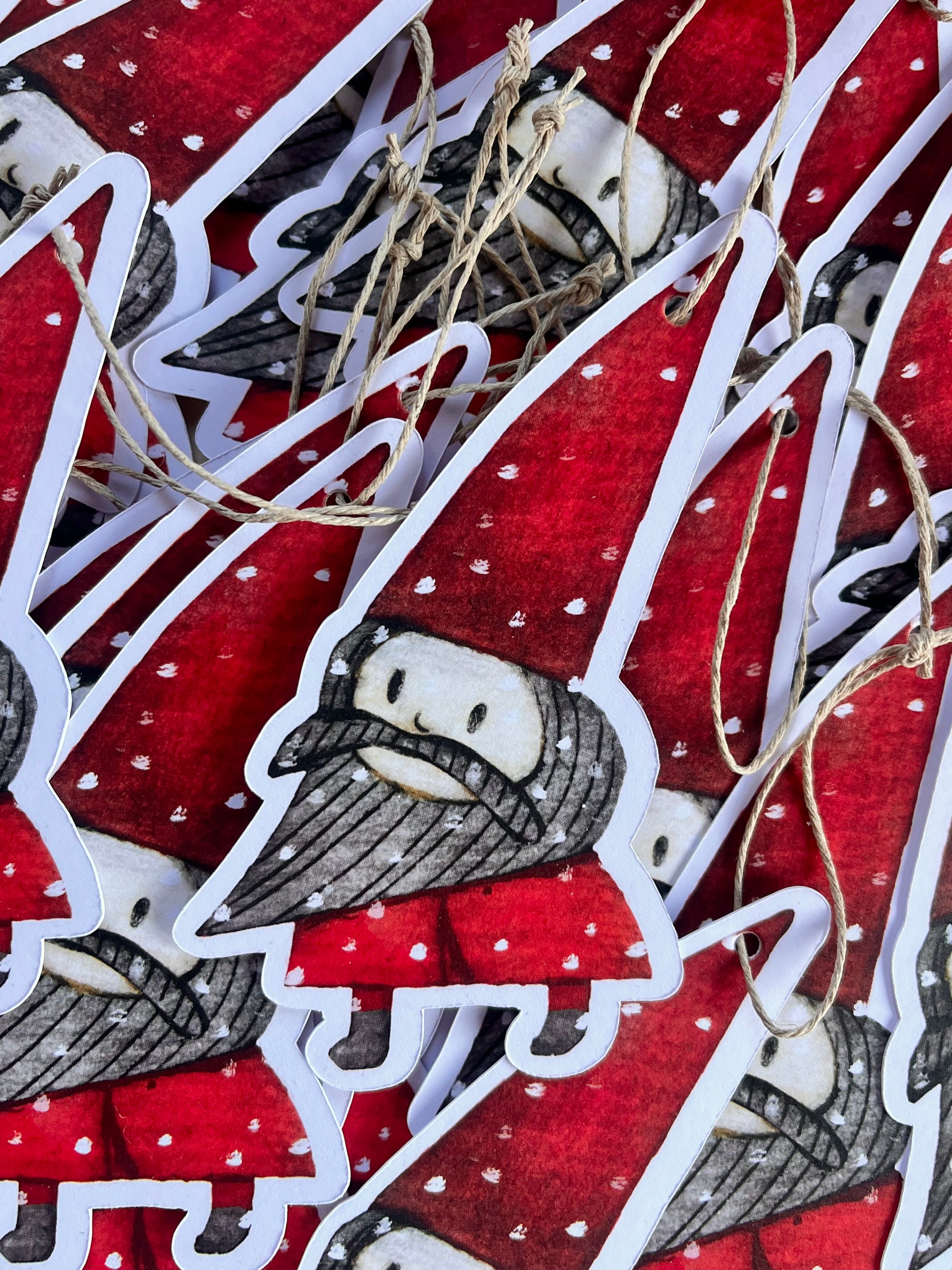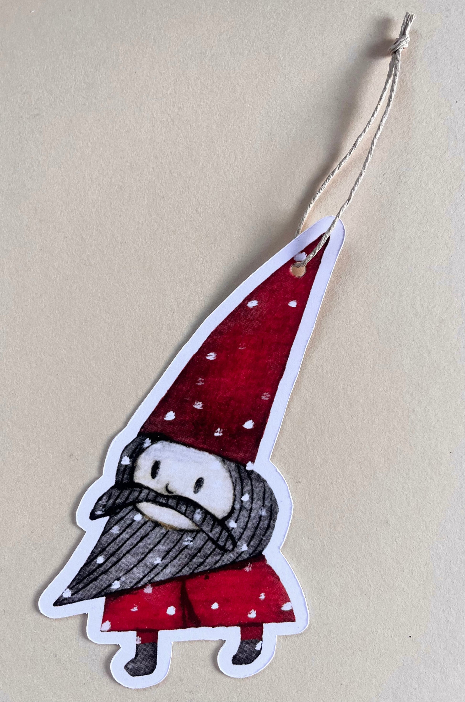 Snor i toppen, blank bakside til å skrive på. Kan brukes som en til og fra-lapp eller som et lite kort.