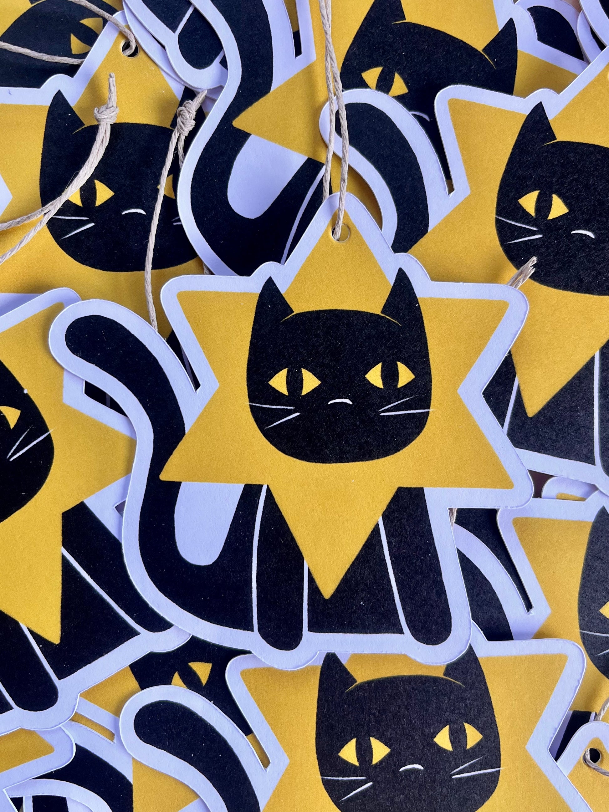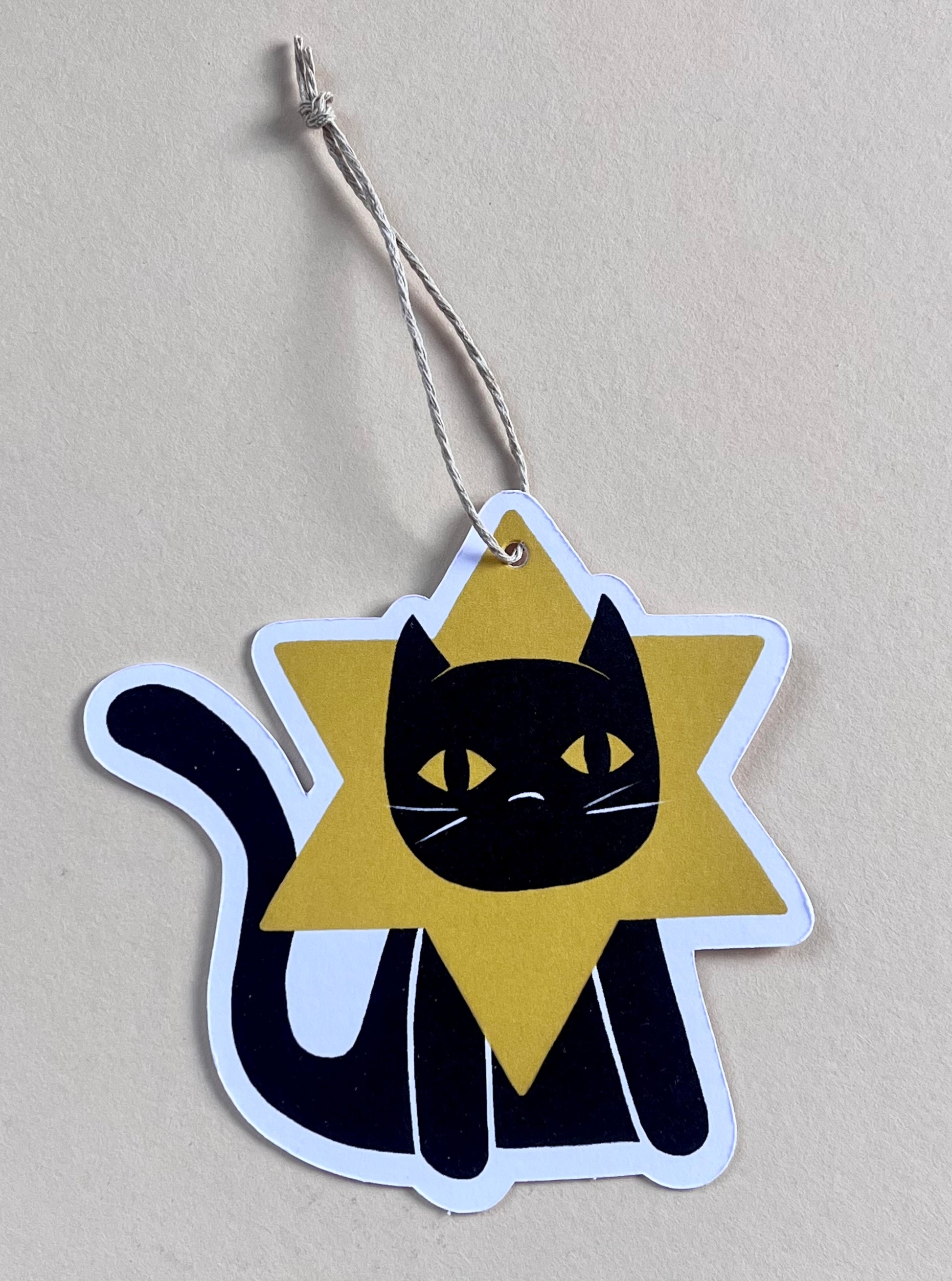 Snor i toppen, blank bakside til å skrive på. Kan brukes som en til og fra-lapp eller som et lite kort.