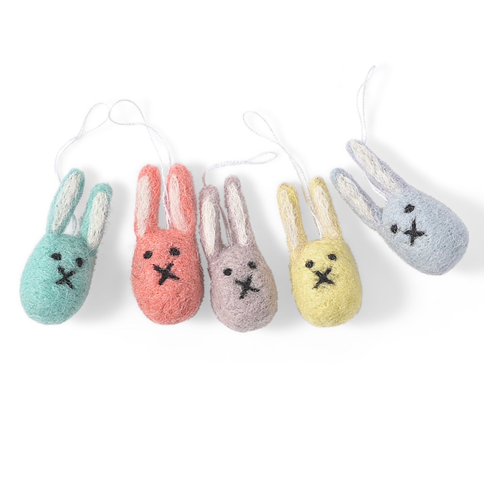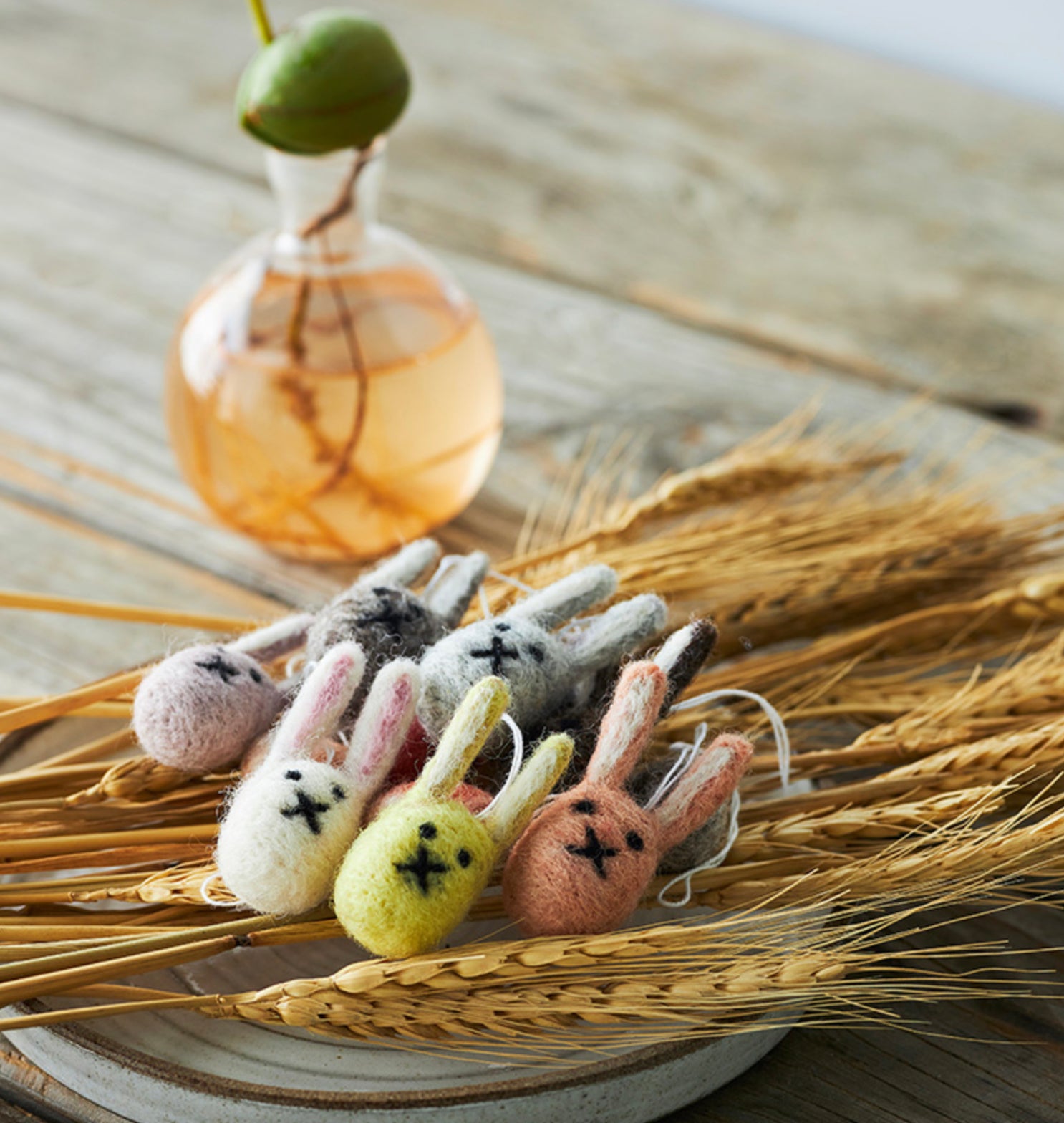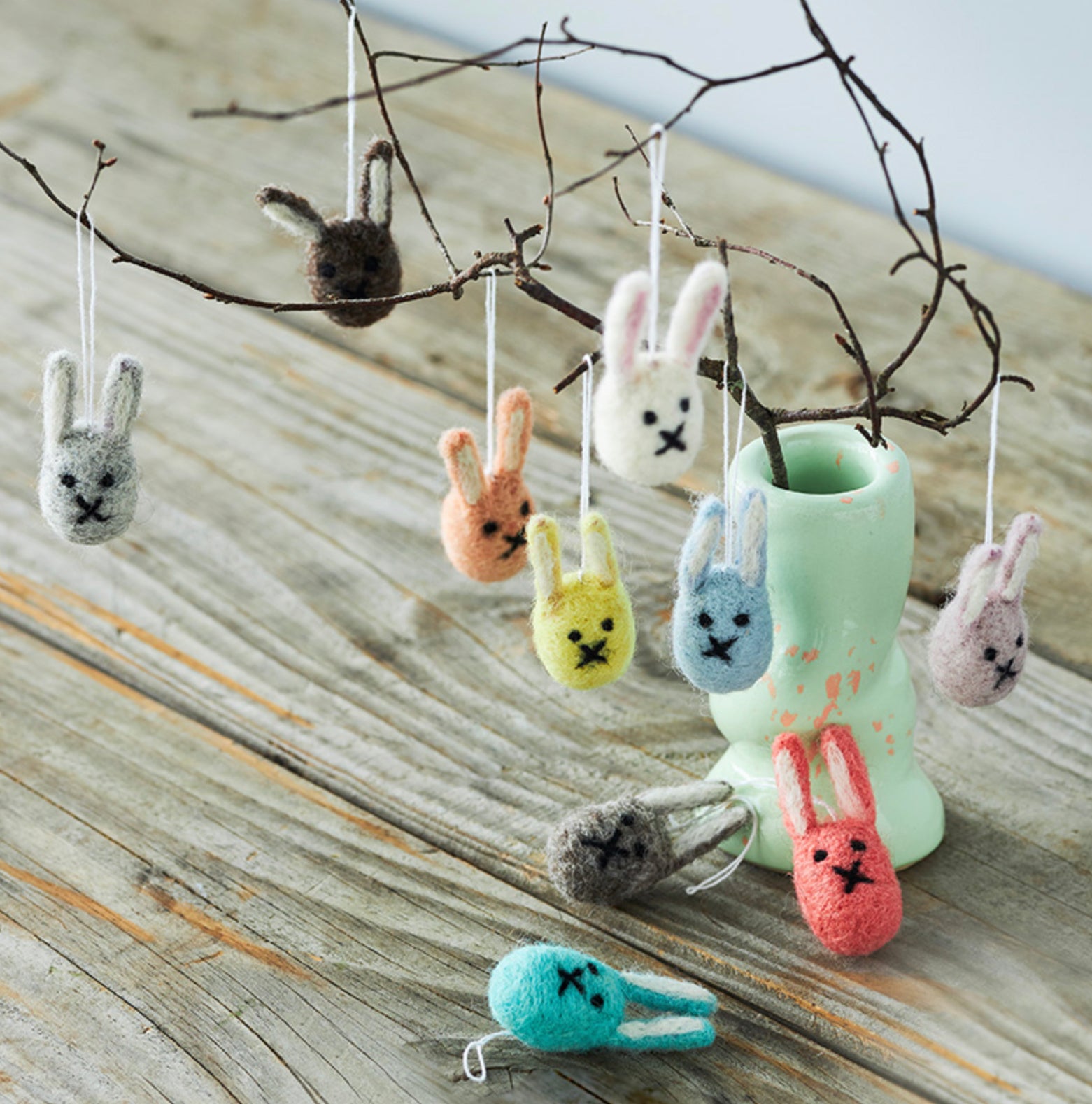 Påske/vårpynt med oppheng, 5pk kaniner i ullfilt