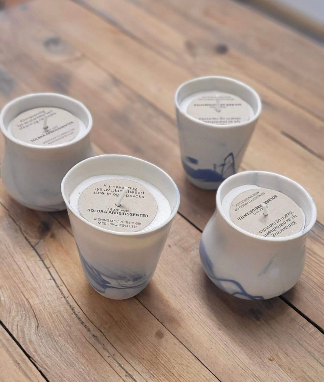 Duftfritt og klimavennlig lys av plantebasert stearin og rapsvoks. Soter/ryker ikke. Lysene er støpt ved Solbrå arbeidssenter i Asker - meningsfylt arbeid gir mestringsfølelse!