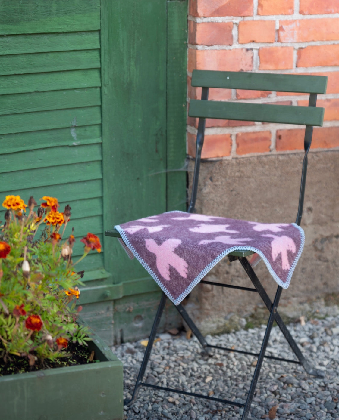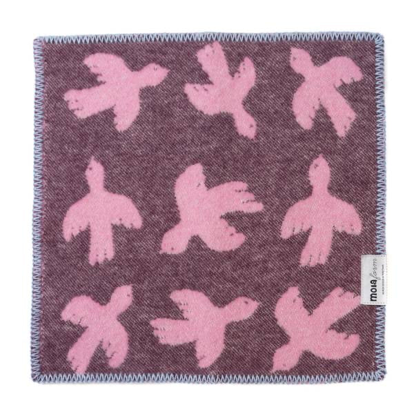 • Nydelig sitteunderlag i ull, med mønsteret FUGL med lysblå kant. Sitteunderlaget har en lys og en mørk side