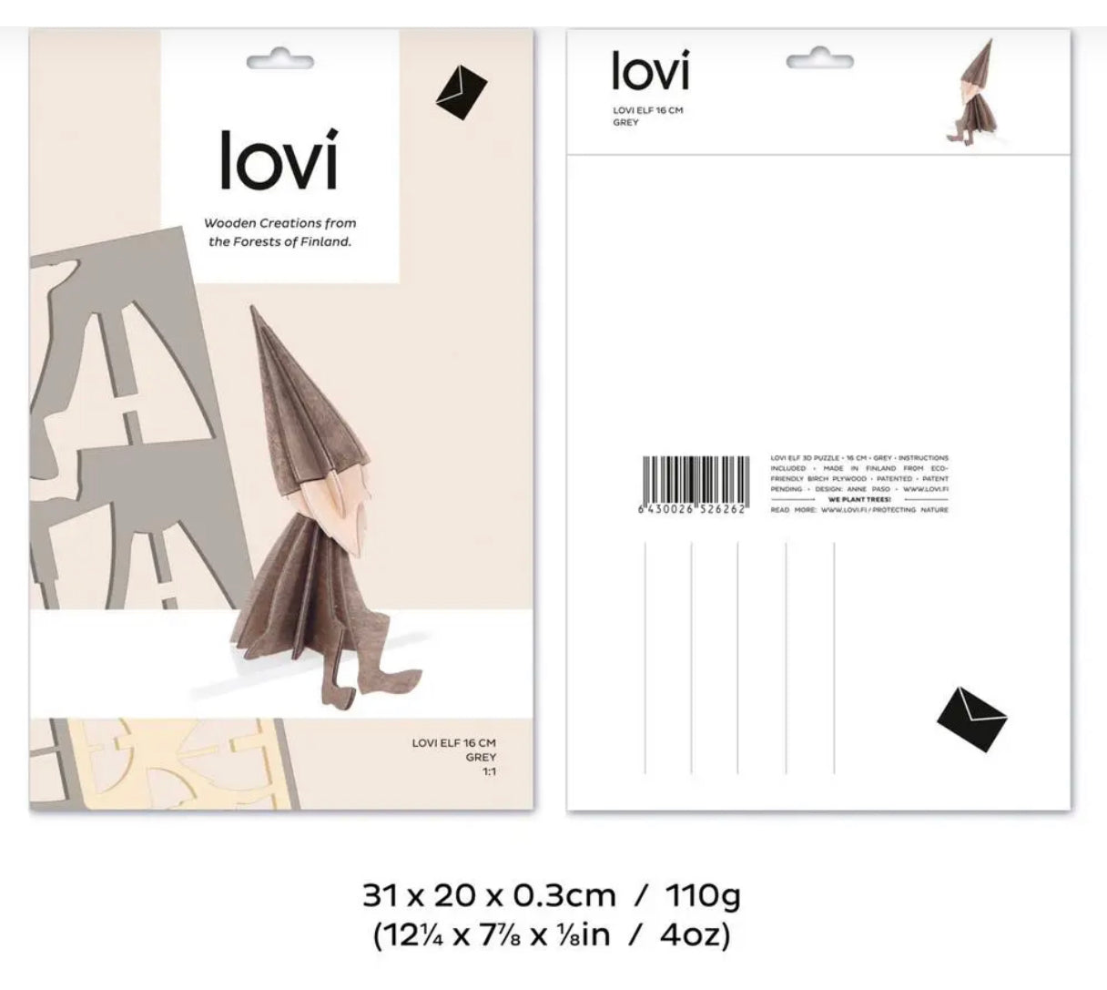 Produsert i Finland. Plastikkfri. Illustrerte byggeinstruksjoner på innsiden. Patentert av Lovi Finland.