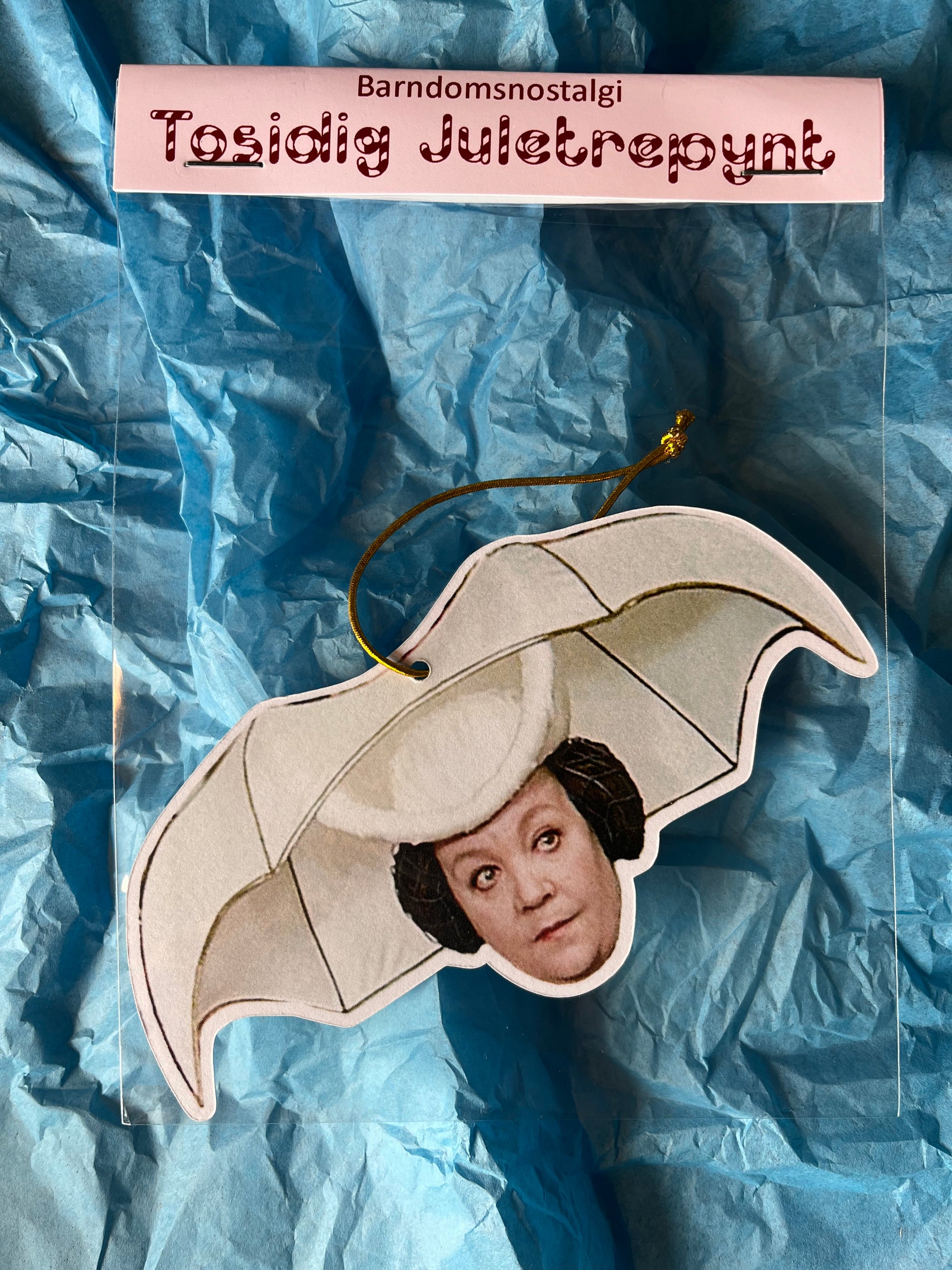 Kommer pakket i cellofanlomme med etikett. Samme format som gavelappene, men denne har trykk på begge sider og kan altså ikke skrives på. Snor i gull eller sølv.