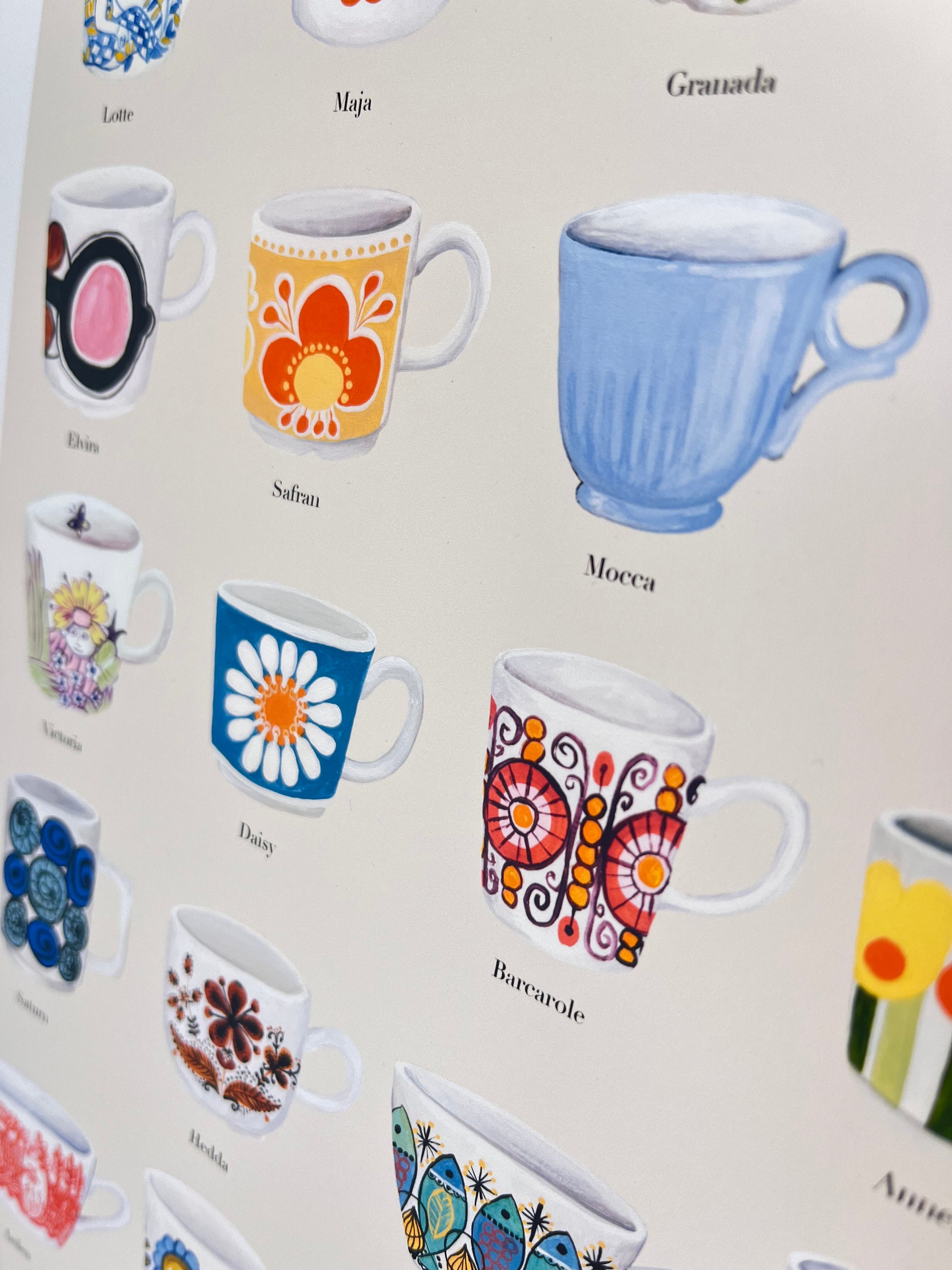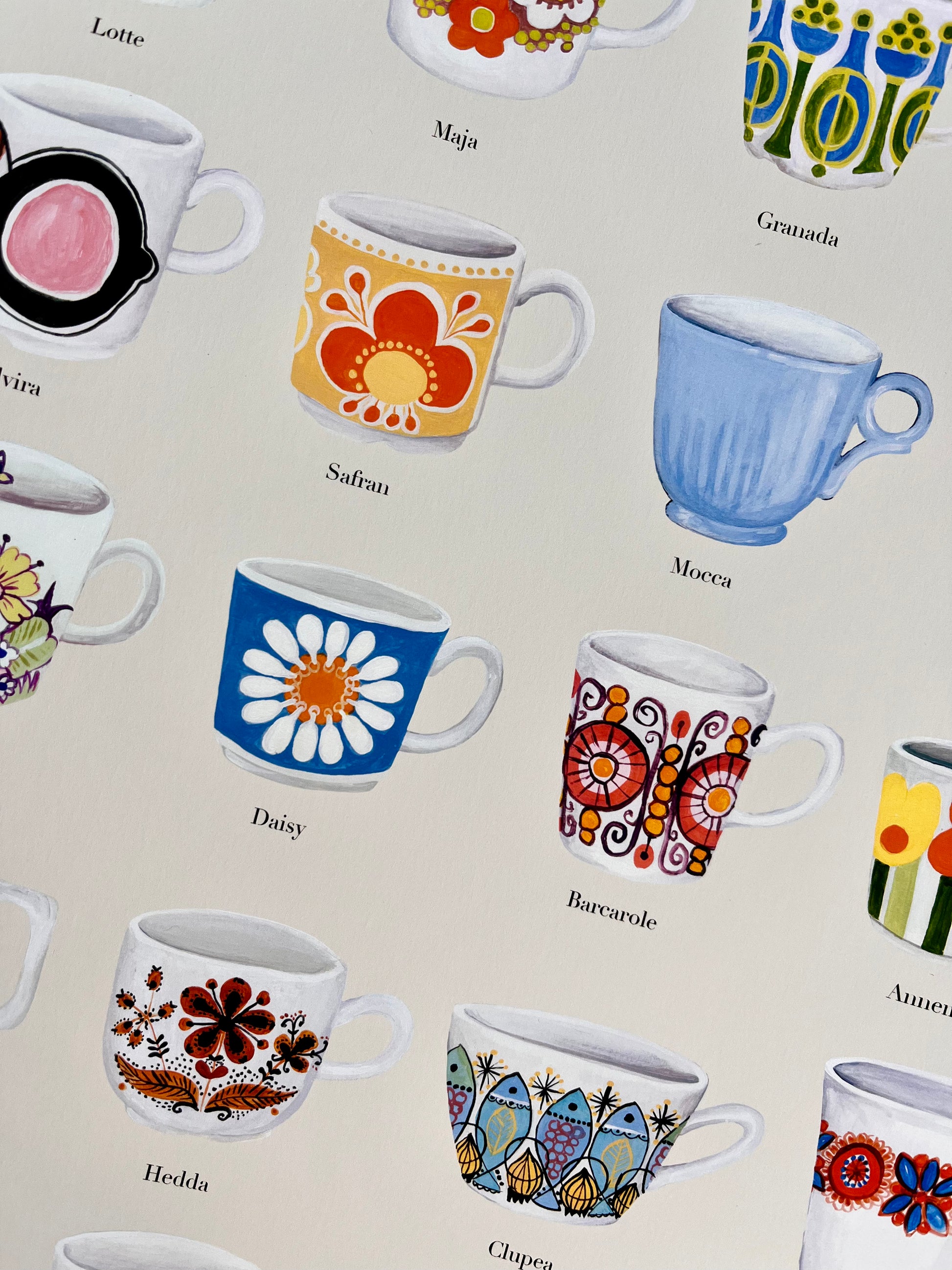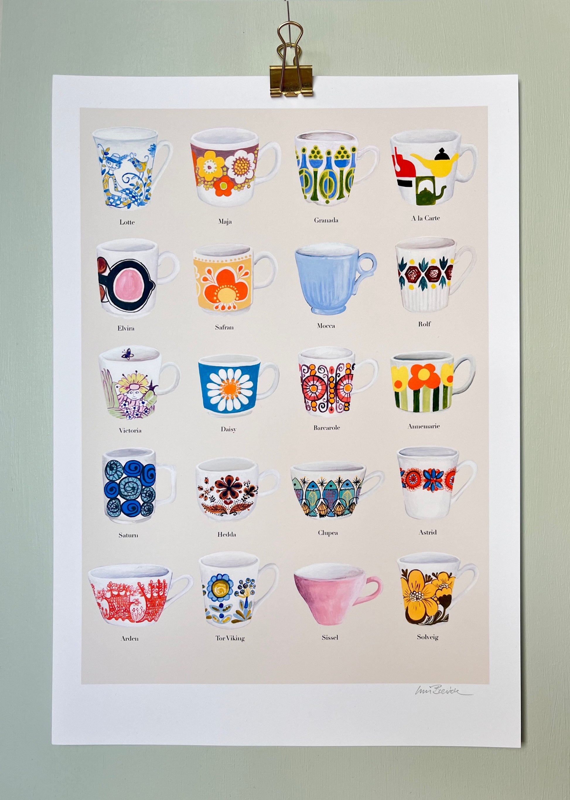 En liten hyllest til noen av de flotte og varierte motivene som har prydet porselen fra Figgjo Fajanse gjennom tidene! Dette er bare et lite utvalg av hva som har blitt produsert. Alle koppene er illustrasjoner malt med akrylmaling og scannet inn, før digital bearbeiding.