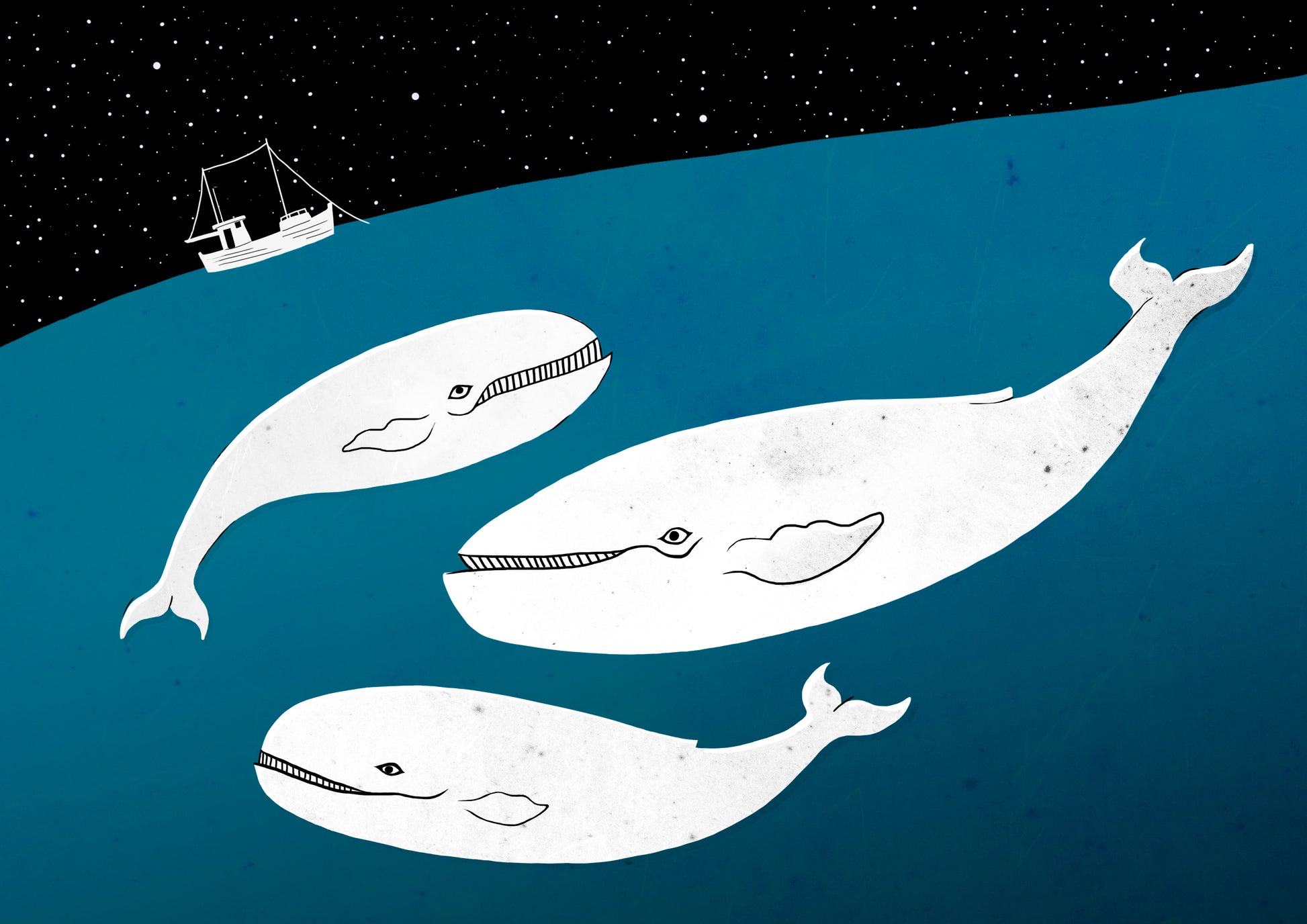 Digital illustrasjon, havet og hvalen.