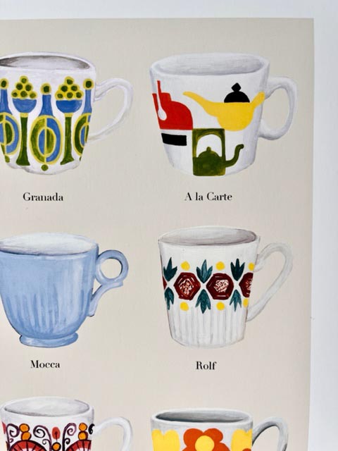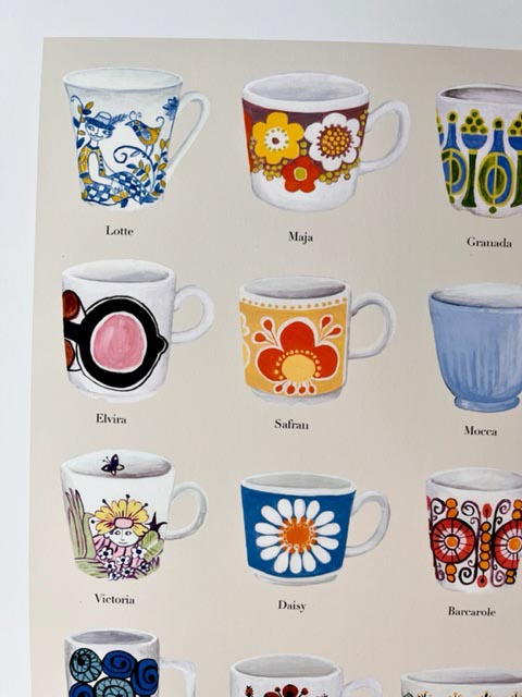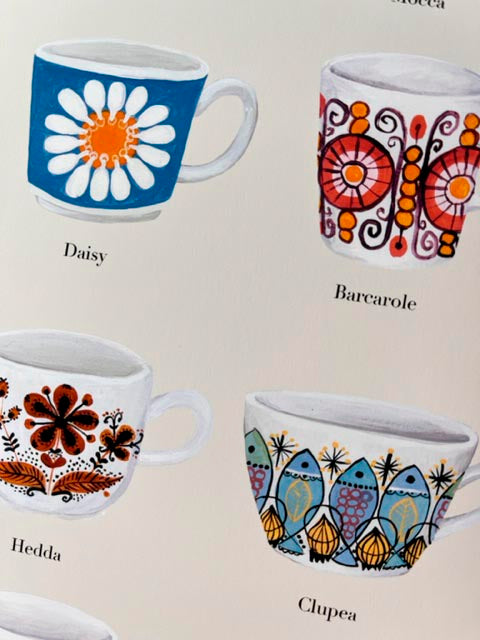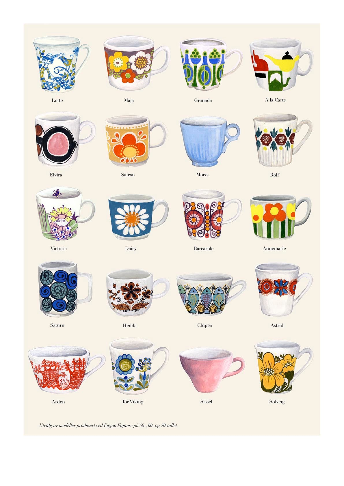 En liten hyllest til noen av de flotte og varierte motivene som har prydet porselen fra Figgjo Fajanse gjennom tidene! Dette er bare et lite utvalg av hva som har blitt produsert. Alle koppene er illustrasjoner malt med akrylmaling og scannet inn, før digital bearbeiding.