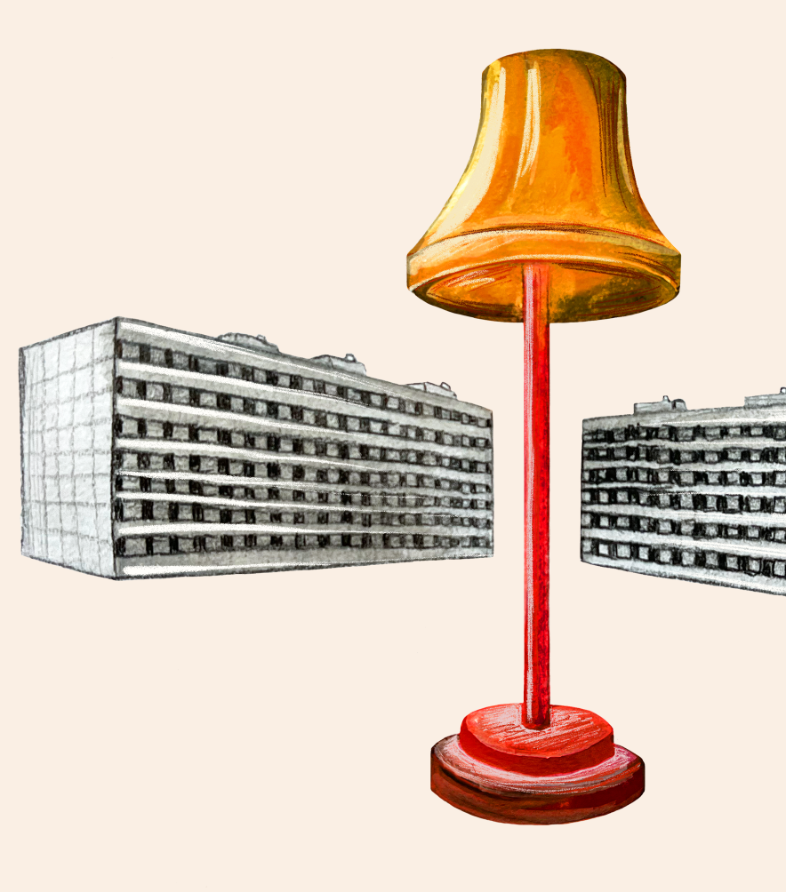 Lampa er en installasjon som har en høyde på 9,16 meter og en bredde på 3,98 meter, og er nå blitt godkjent som verdens største lampe. Den har til og med innebygd rumpevarmer til kalde vinterdager. Tanken er at lampa står midt i storstua og lyser opp, med blokkene rundt som stuevegger. Blokkene er totalt 10 7-etasjes blokker med i alt 882 leiligheter fra 1968-69, tegnet av arkitekt Preben Krag.