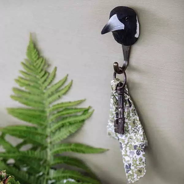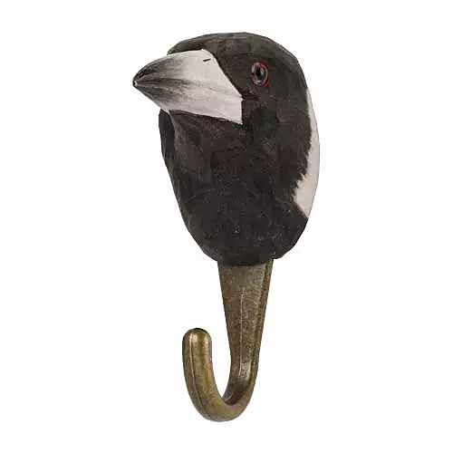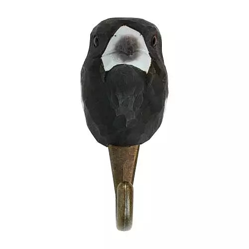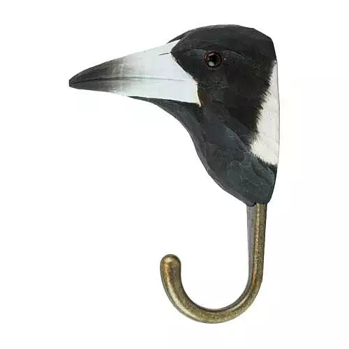 Krok håndskåret av lindetre, håndmalt i miljøvennlige farger. Krok i bronsefarget metall.